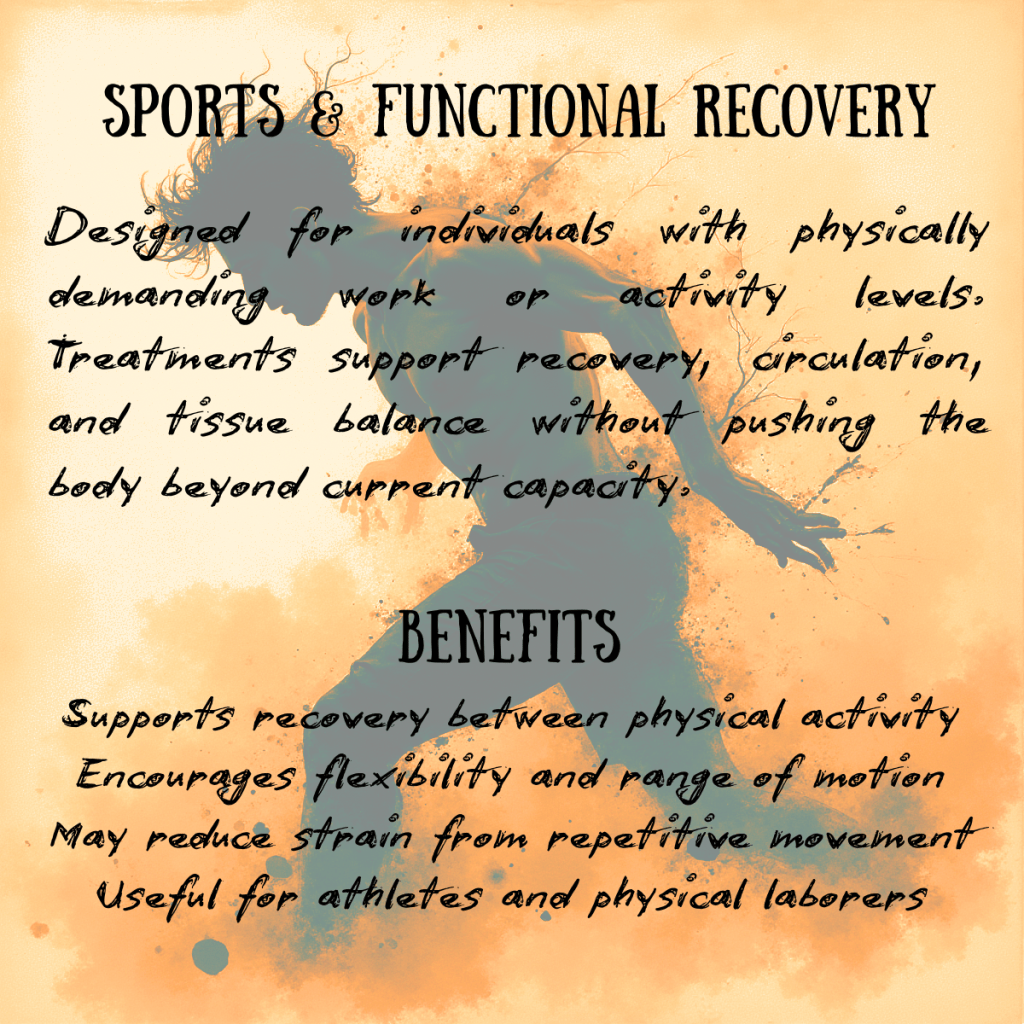 - Emphasis on pain reduction, stress regulation, and functional balance